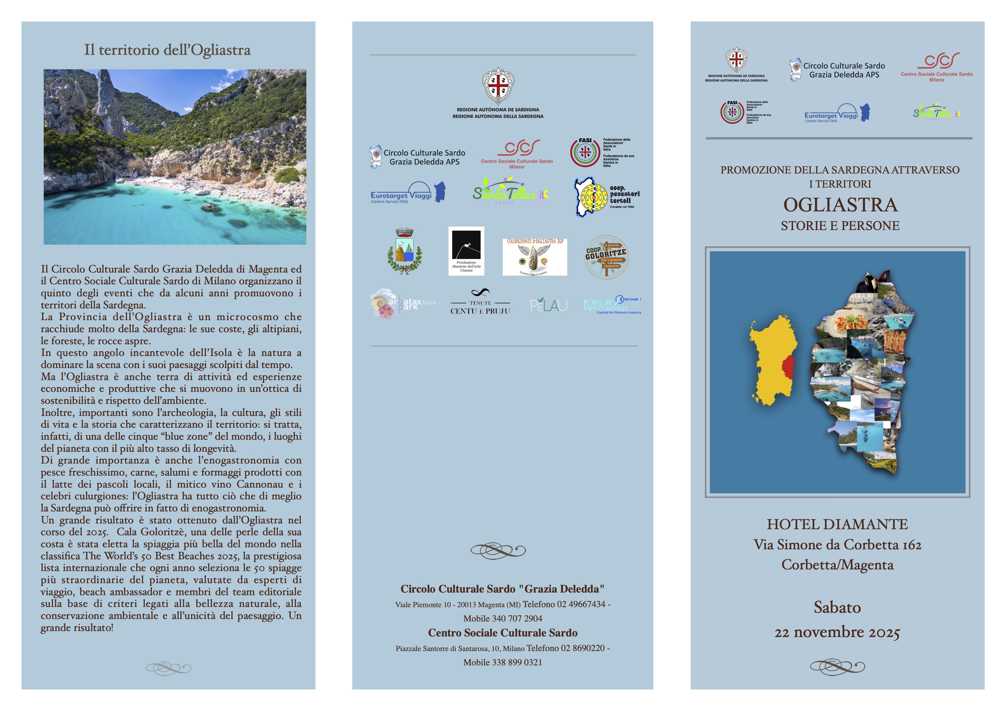 Il Convegno quest’anno di svolgerà a Magenta nelle sale dell’Hotel Diamante. Saranno presenti ospiti e relatori che per l’Ogliastra hanno un ruolo di forte impegno e propulsivo. L’appuntamento è previsto per le ore 16.00 di sabato 22 novembre 2025.